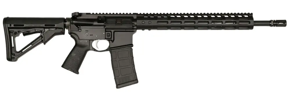 This Rogue Hunter Gen1 M-Lok rifle features a 16" bead blasted stainless steel barrel with a cherry bomb muzzle break, a Gen1 7075 T-6 aluminum receiver with a black armor cerakote finish, black Magpul MOE pistol grip, and a black Magpul STR stock.