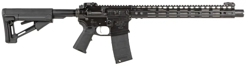 This Infidel M-Lok Gen3 rifle features a 13.7" black armor cerakote stainless steel barrel with a KX 5 flash suppressor, a Gen3 7075 T-6 aluminum receiver with a black armor cerakote finish, black Magpul Miad pistol grip, a black Magpul STR stock, and has Magpul MBUS Pro folding sights..