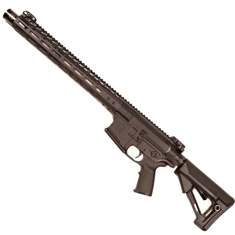 This Infidel M-Lok Gen3 rifle features a 13.7" black armor cerakote stainless steel barrel with a KX 5 flash suppressor, a Gen3 7075 T-6 aluminum receiver with a black armor cerakote finish, black Magpul Miad pistol grip, a black Magpul STR stock, and has Magpul MBUS Pro folding sights.