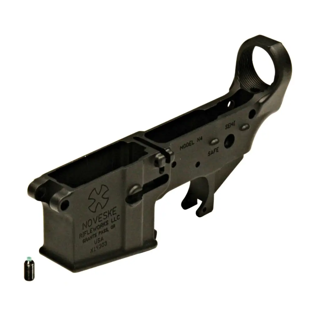 This Gen1 stripped lower receiver features a black hardcoat anodized finish, aluminum construction, is compatible with all Mil-Spec AR-15 parts and accessories, and it includes a polymer tipped tension that ensures a snug fit with the upper receiver.