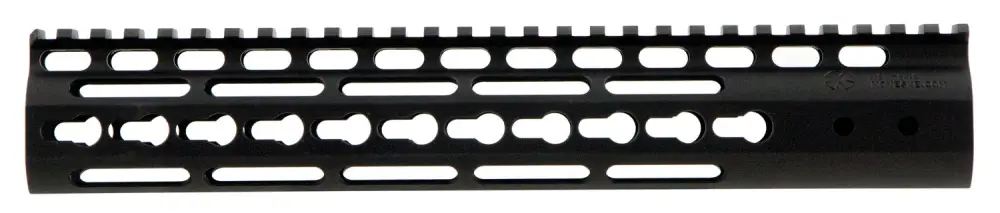 This NSR (Noveske Skinny Rail) features a 6005-T6 aluminum construction with a black hardcoat anodized finish, a 1913 continuous top and bottom rail, and a keymod direct attachment system. It comes with a barrel nut, mounting screws, and a T25 wrench.