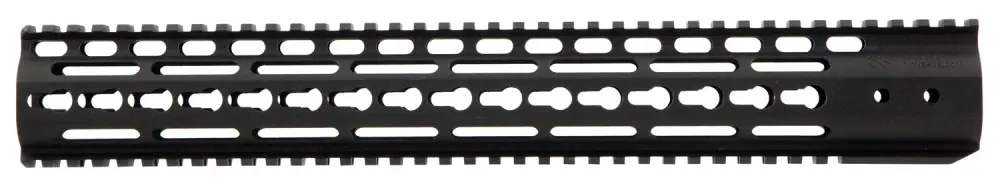This NHR (Noveske Hybrid Rail) features a 6005-T5 aluminum construction with a black hardcoat anodized finish, a 1913 continuous top and bottom rail, and a keymod direct attachment system. It comes with a barrel nut, mounting screws, and a T25 wrench.
