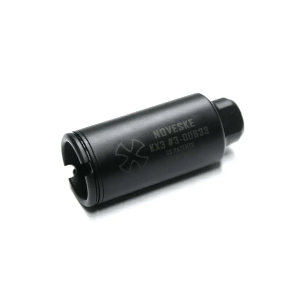 This KX3 flash suppressor features a black nitride finish, 1.35" diameter, and a 1/2x28 thread pitch. It will work on any barrel length.