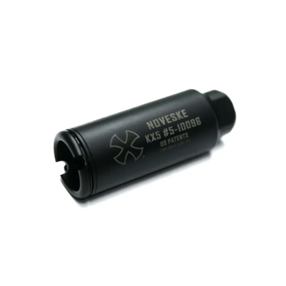This KX5 flash suppressor features a black nitride finish, 1.2" diameter, and a 5/8x24 thread pitch. It will work on any barrel length.