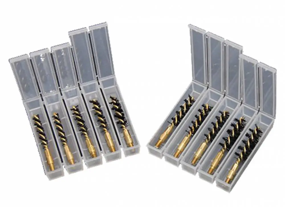 Otis' Bore Brushes have a proprietary Tufcor core wire that is corrosive-resistant and has a tighter twist for better bristle retention with twice the fill of other brushes with bristles right to the end. Caliber-specific brushes have the size indicated on the stem. Cleans .22-.45 Caliber. Includes: (2) .22/.25/.27/(2) .30/.35/.38/.40/.45 caliber nylon brushes.