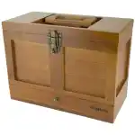 The 25pc Universal Wooden Cleaning Chest is a 2-in-1 wooden chest: storage box/gun vise. Wood is attractive aged-oak. Velour protective gun vise stows inside chest when not in use. The kit features- a drawer with custom parts organizer, 3 Solid brass rods for rifles, pistols and shotguns; 7 Bronze brushes to fit: .22/270-cal/7mm, .30/8mm, .38-357-cal/9mm, .40-45-cal/10mm, 20/28-ga, 10/12-ga; 50 Cleaning patches; 7 Mops to fit: .22-25-cal/6-6.5mm, .270-30-cal/7-8mm, .338-35-cal, .38-357-cal/9mm, .40-45-cal/10mm, 20/28-ga, 10/12-ga; 2 Spear pointed jags to fit: .22/270 cal, 30-cal and larger rifles/pistolsl; 3 Slotted patch loops to fit: .22/270-cal, 30-cal and larger rifles/pistols; 10-28-ga shotguns and a shotgun accessory adapter.