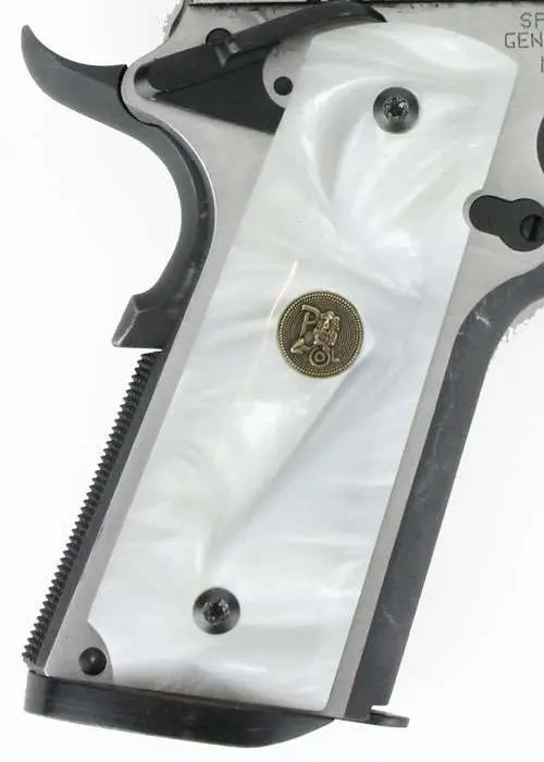 Pachmayr's Brilliant Pearl grips add the ultimate custom look to your 1911. Brilliant Pearl grips are strong and weather-resistant, as well as offering a smooth gripping surface which will not snag on clothing for concealed carry.
