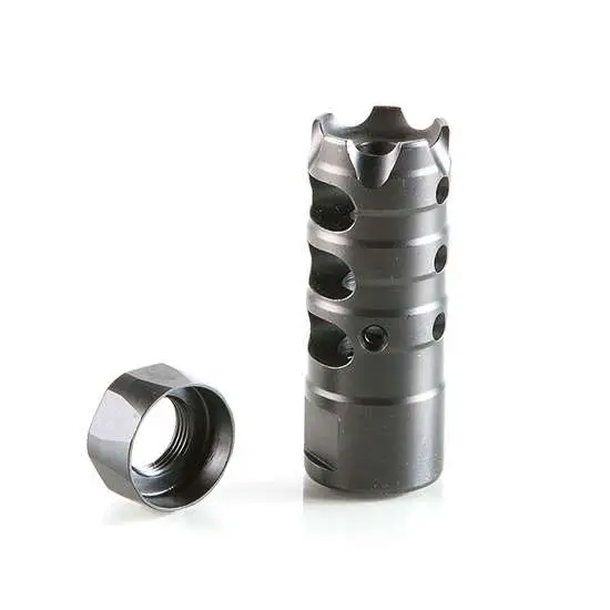 The nitride heat treated muzzle brake controls muzzle impulse for ultimate accuracy and an unbelievably soft recoil. It comes complete with a nitride heat treated collar and five (5) strike prongs.