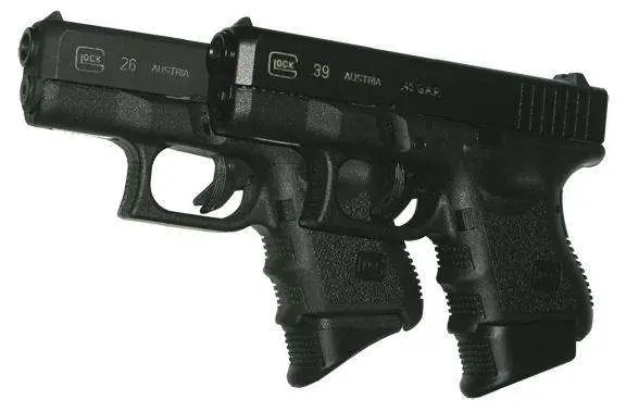 Pearce Grip's Plus Extension replaces the magazine base plate and internal floor plate. It will add three rounds to the Glock 26, two rounds to the Glock 27 and 33, and one round to the Glock 39. It will also add 1" additional length for better control and comfort.