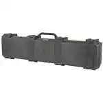 The Single Rifle case features a high-impact polyethylene body which assures protection of your firearm with heavy duty handles, four push button latches for secure closure and easy-open access. Five layers of protective foam and two stainless steel lock hasps afford extra security during transport. The Single Rifle case is ideal for your scoped rifle from carbine to full length magnums. It also crushproof, dustproof, and weather resistant. Its interior dimensions are: 50" L x 10" W x 6" D.
