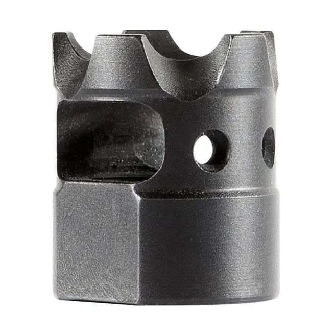 The Micro B Muzzle Brake controls muzzle impulse for ultimate accuracy and soft recoil. It comes with a collar jam nut and five strike prongs.image
