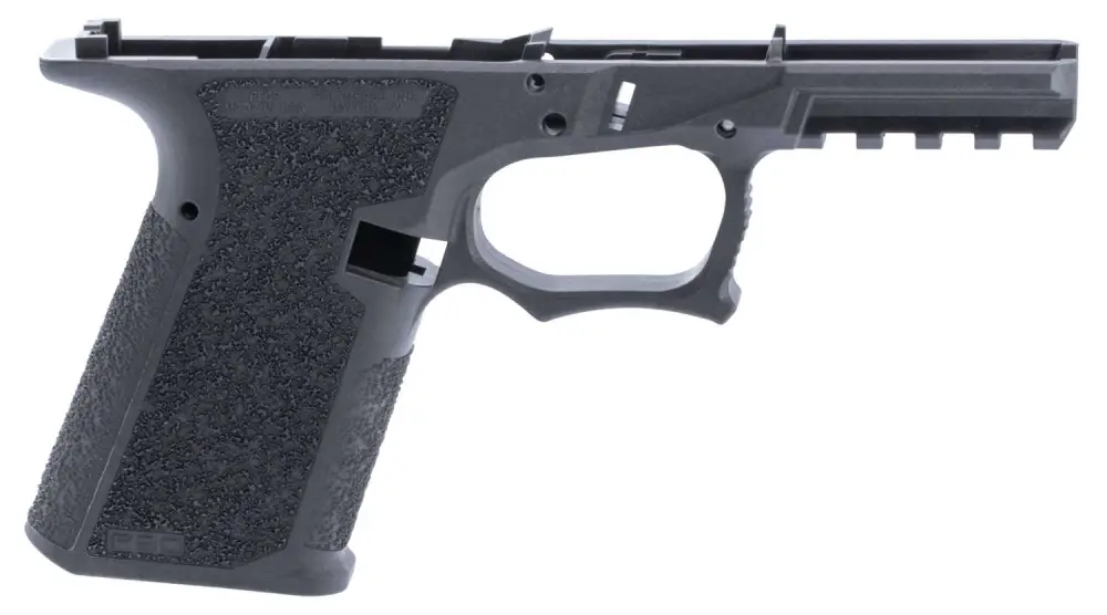Polymer80's PF9C Serialized Compact Pistol Frame offers compatibility with Glock 19/23 Gen3 components, and is an industry first. Features such as the extended beaver tail, double undercut trigger guard, and a thumb ledge considerably enhance the ergonomics allowing for an effective grip and improved recoil mitigation. The frame is constructed of a high-strength reinforced polymer with a Picatinny/STANAG compliant accessory rail. This model has a Cobalt finish and features an aggressive and adaptable grip texture.