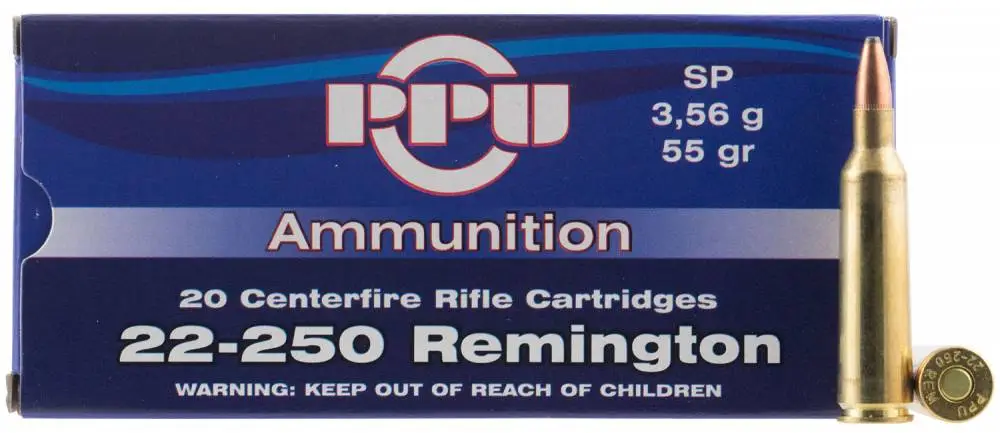 This 22-250 Remington features a soft point bullet and comes packaged 20 rounds per box, 50 boxes per case.