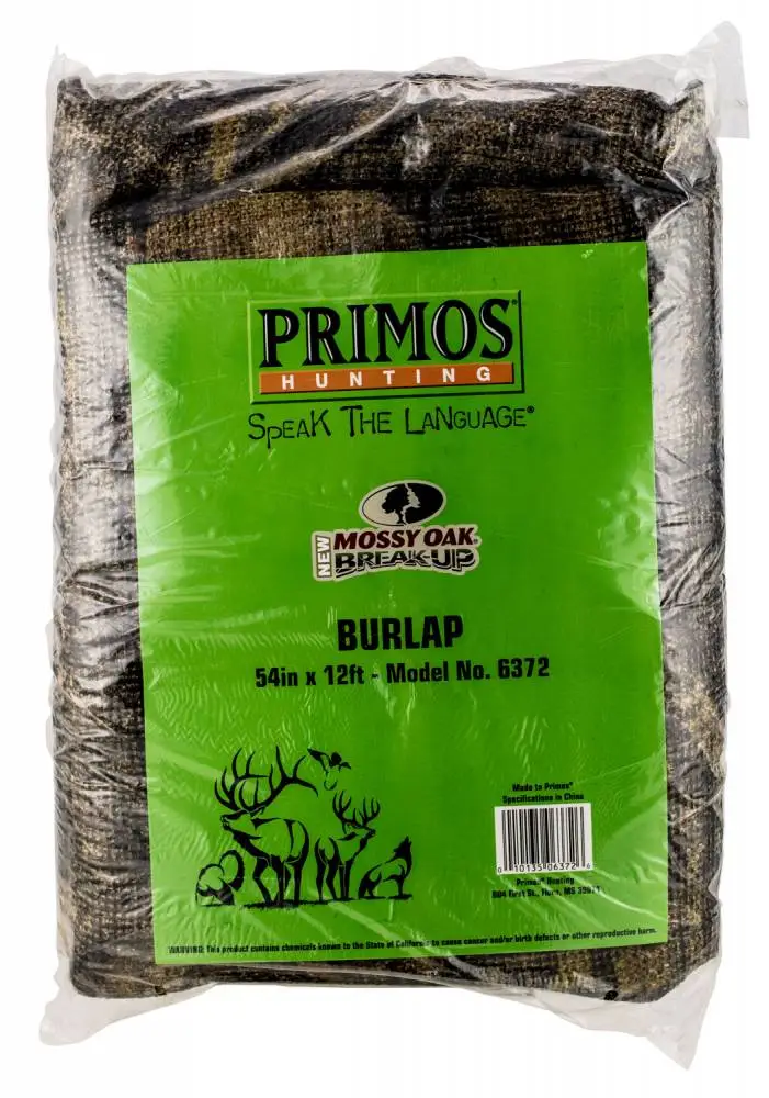 Primos' 12" x 54" Burlap bulk roll features a Mossy Oak Break Up.
