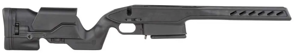 The Archangel AAS111MLA is an aluminum pillar bedded, fully adjustable precision stock for Savage Model 1100/111 long action rifles (and variants) chambered in cartridges based on the 300 WIN Mag with a maximum overall length of 3.410". Converts all models to a double column TYPE C detachable magazine configuration. This weight reduced and slimmed modern precision stock features an ergonomic gooseneck style grip with palm swells and a locking storage compartment. The comfortable, ventilated forend is contoured and textured for positive retention and features two M-Lok slots on the bottom for mounting accessories such as a rail, bi-pod or light. The click adjustable cheek riser, with a 1.25" travel in .05" increments, assures a proper fit to each individual. The buttstock features a textured, contoured recoil pad and off-hand pressure hook. The varmint-barrel sized barrel channel accepts and free-floats most barrel contours. Also, features three steel QD style flush fit hard points for QD style sling swivels (sling swivels not included). The AAS111MLA is impervious to weather and will withstand all standard gun solvents and oils. Includes one TYPE C- Archangel Magnum Caliber .300 WIN, 7mm Rem Mag 6rd with a 2rd limiter black polymer magazine (AAMLA5), a traditional style sling stud (not installed) for using a standard sling swivel on the forend or for mounting Harris style bipods, Hex head action screws and Allen wrench. Made in USA.