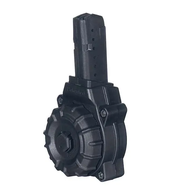 ProMag 9mm, 30rd drum fits AR-15 carbines using GLOCK type 9mm magazines. Made in USA.