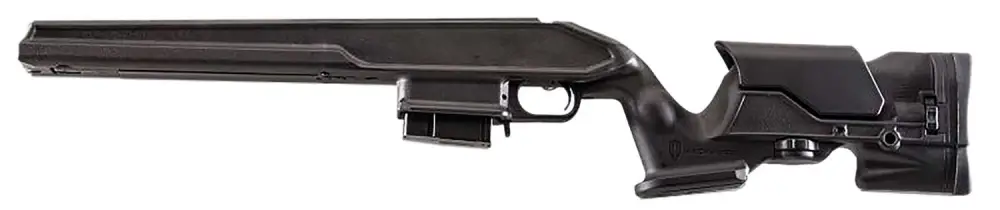 Made in the USA, the Archangel AA1500 is an aluminum pillar bedded, fully adjustable precision stock for the Howa or Smith & Wesson 1500 and Weatherby Vanguard short action rifles chambered in cartridges based on the .308 cartridge. Converts ADL, BDL, and DM models to a double column TYPE A detachable magazine with rear paddle release design. This modern precision stock features an ergonomic gooseneck style grip with palm swells, flared base, and locking storage compartment provides excellent control and feel. The click adjustable cheek riser, (1.5 travel in .05 increments) and length of pull (13.5 14.625), assures a proper fit to each individual. The varmint-barrel sized barrel channel accepts and free-floats most barrel contours. An internally integrated, flush fit, steel and aluminum reinforced bi-pod is there when you need it, but completely non-obtrusive when you don't. This internal bi-pod features a switch operated, one hand deployment and textured feet for improved stability in soil.
