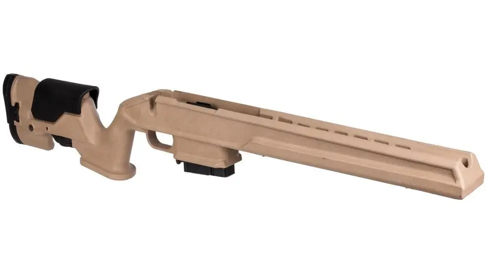 Made in the USA, the Archangel AA1500 is an aluminum pillar bedded, fully adjustable precision stock for the Howa or Smith & Wesson 1500 and Weatherby Vanguard short action rifles chambered in cartridges based on the .308 cartridge. It converts ADL, BDL, and DM models to a double column TYPE A detachable magazine with rear paddle release design. This modern precision stock features an ergonomic gooseneck style grip with palm swells, flared base, and locking storage compartment provides excellent control and feel. The click adjustable cheek riser with a 1.5 travel in .05 increments and a length of pull of 13.5 14.625, assures a proper fit to each individual. The varmint-barrel sized barrel channel accepts and free-floats most barrel contours. An internally integrated, flush fit, steel and aluminum reinforced bi-pod is there when you need it, but completely non-obtrusive when you dont. This internal bi-pod features a switch operated, one hand deployment and textured feet for improved stability in soil. Includes one (1) TYPE A - Archangel .308 (10) Rd blue steel magazine.
