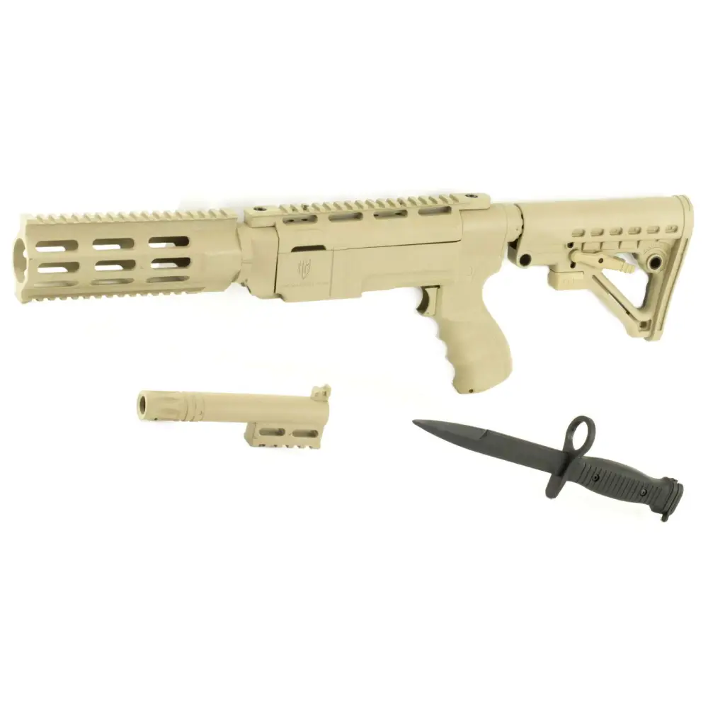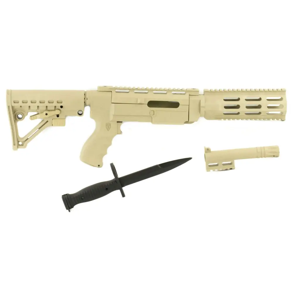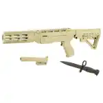 Made in the USA, the Archangel conversion stock will make your Ruger 10/22 mimic the look and feel of an M-4, flat-top carbine. This super tough, and feature packed stock includes an adjustable six position buttstock adjusts from 10.25" to 14.25" length of pull with four steel QD hardpoints molded in, ergonomic finger grooved pistol grip with a locking storage compartment, a full length Picatinny top rail, a lower forend Picatinny rail, and hidden stock extension storage compartment. It will fit and free-float all standard cut 10/22 barrels and bull barrels up to .920 in diameter.