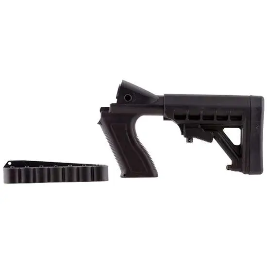 This Archangel buttstock transforms your Remington 870 12 gauge shotgun into a home defense weapon. It features ambidextrous, mirror-image design for both right and left handed shooters, constructed of high-strength carbon fiber filled polymer, and a Pistol grip with storage. Included is a six-position, collapsible butt-stock with tunable, interchangeable-insert recoil pad / soft and firm inserts and a 7-round shell carrier mounts to the left side, with individual shell-retention adjustment for each round.