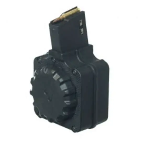 Made in the USA, this drum AR-308 magazine is constructed of DuPont Zytel polymer with an injection molded mag follower, stamped steel feed lips and mag catch, and heat-treated stainless steel mag spring. NOTE: This model does not fit rifles using Armalite pattern magazines.
