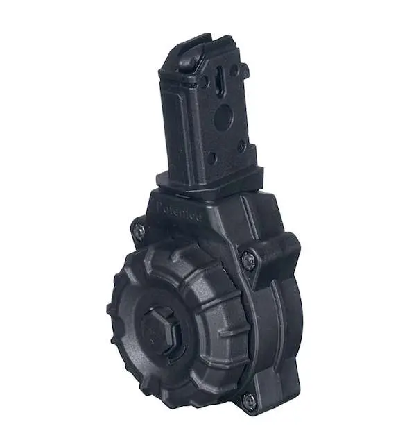 Made in USA, the CZ Scorpion drum magazine is constructed of DuPont Zytel based polymer with an over molded heat treated carbon steel feed lip and injection molded magazine follower. Its magazine spring is formed from heat treated stainless steel.
