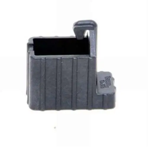 ProMag's pistol magazine loader for Glock 9mm & .40S&W double-stack magazines has top dimensions of 1-5/16" x 1" and smaller. It is constructed of an injection-molded, glass-filled, black-polymer.