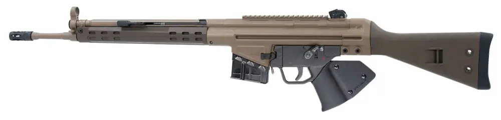 The CA Compliant GIR rifle features a parkerized finish, classic green furniture, 18" tapered barrel, and a classic "SEF" steel lower. The precision-welded top rail allows the addition of your favorite scope or you can use the traditional iron sights. CA compliant models ship with polymer lower and grip wrap.