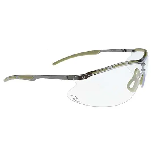 Radians Protective Eyeware features Crossfire's High Definition (HD) Lens Technology which provides enhanced vision while the polarized lens technology prevents glare. Its frame utilizes materials that provides added durability and protection along with TPR technology which increases the grip to keep glasses on your face. The eyeware has polycarbonate lenses with 99.9 percent UV protection, ANSI Z87.1+ standards and a hard coat for scratch resistance. The Bravo glasses is ballistic rated and features a slick low profile frame with rubber tipped temples, dual lens and provides a solid, comfortable fit. It comes with a reusable protective eyewear clam. This model has a metal frame finish with clear lens.