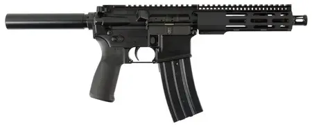 The Radical Firearms complete AR-Pistol is a fully Mil-Spec AR-15 pistol built using law enforcement grade upper receivers and mil spec lowers. The 4140 chromoly vanadium steel barrel is Melonite treated for a harder-than chrome finish. This same finish is applied to the bolt carrier groups, helping to reduce receiver wear and increase reliability. The bolt heads are MIL-STD and MPI for quality assurance. The full-length, free-float handguard keeps your hands cool and provides plenty of room for accessories. This model has a 7.5" barrel, Radical Firearms 7" FCR handguard with Magpul M-Lok slots on sides and bottom of the rail.