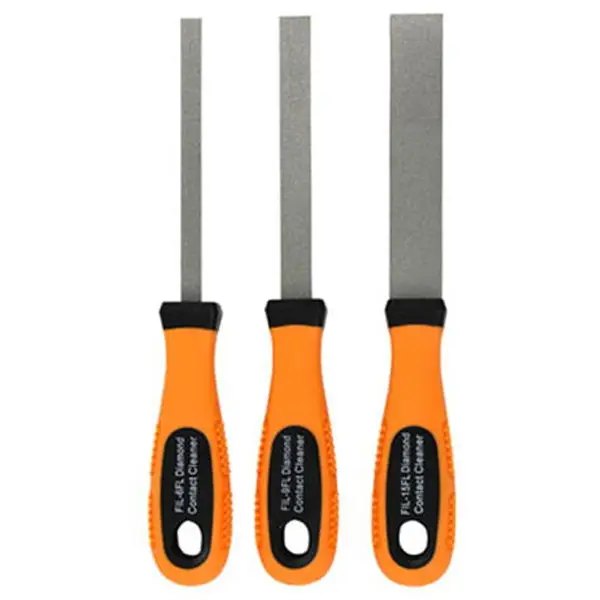 RamRodz Diamond-Coated Flexible Flat Files are micro-thin and are made specifically for general parts fitting and filing applications where standard files are inadequate. Each file has a non-slip, high-vis, ergonomic handles for comfortable use and 400 grit diamond abrasion. They can be used on metal, wood, and polymer.