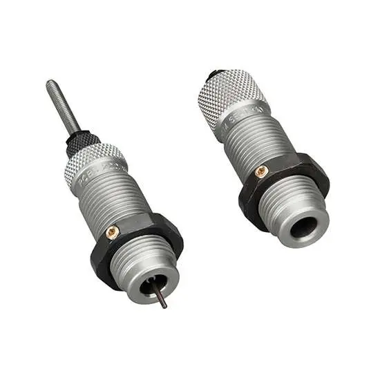 This two-die set is intended for reloading bottleneck cases, and consists of a Full-Length Sizer Die with an Expander-Decapping Unit, and a Seater Die with Bullet Seater Plug. The Full-Length Sizer Die brings the case to SAAMI minimum cartridge dimensions. It sizes the outside of the case, de-primes and expands the neck to accept the bullet. The die has vents to prevent case damage caused by trapped air and for excessive lubricant. Headspace is held to minimum tolerances to avoid changing the case body length during full length sizing. The included Seater Die has a built-in roll crimper to secure the bullet at the same time as it's seated.