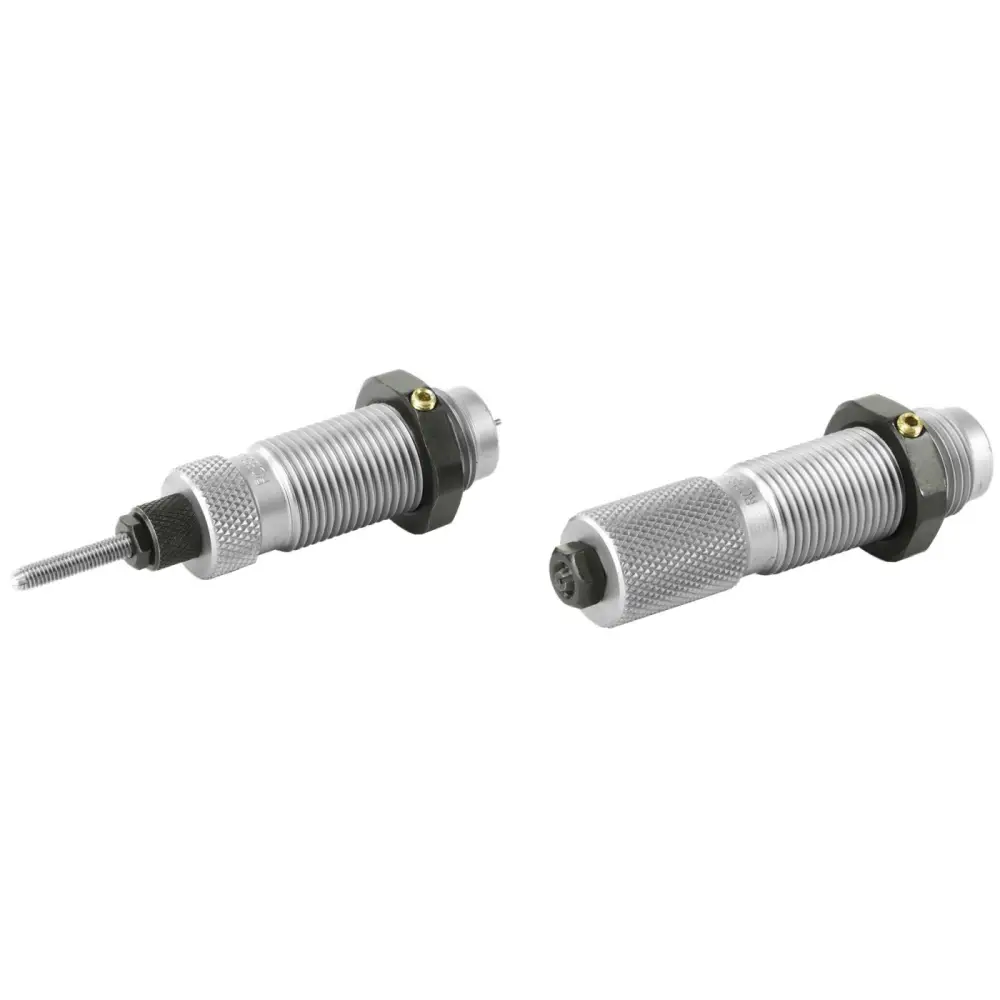This two-die set is intended for reloading bottleneck cases, and consists of a Full-Length Sizer Die with an Expander-Decapping Unit, and a Seater Die with Bullet Seater Plug. The Full-Length Sizer Die brings the case to SAAMI minimum cartridge dimensions. It sizes the outside of the case, de-primes and expands the neck to accept the bullet. The die has vents to prevent case damage caused by trapped air and for excessive lubricant. Headspace is held to minimum tolerances to avoid changing the case body length during full length sizing. The included Seater Die has a built-in roll crimper to secure the bullet at the same time as it's seated.