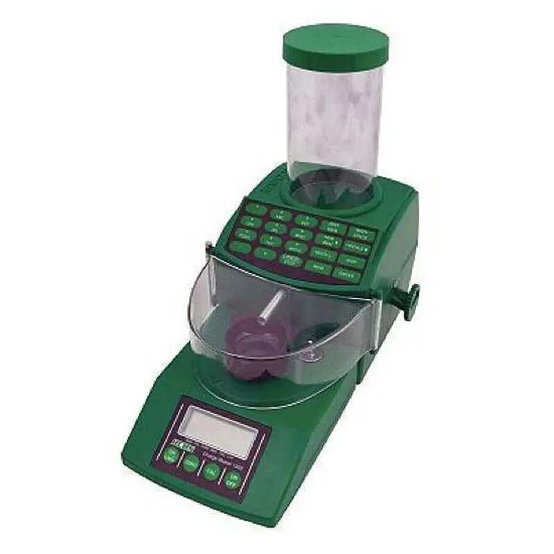 The ChargeMaster Combo features the ChargeMaster 1500 Scale and ChargeMaster Dispenser, preassembled to form an unmatched combination of speed and accuracy. There is no longer a need for timely calibration to the type of powder being used. Simply fill the 1 lb+ capacity powder hopper with smoke- less powder, enter the desired charge and press the dispense button. Average dispensing time is under 30 seconds for a 60 grain extruded powder charge. Dispensing can be done in grains or grams mode. Accurately weighs and dispenses all extruded (stick), ball (spherical) and flake smokeless powder from 2.0 to 300 grains to +/- 0.1 grain. You can store up to 30 of your favorite loads in memory for fast easy recall. The front to back layout allows easy access to the scale pan by right or left handed users. The clear cover eliminates fluctuations in weighing caused by air currents without obscuring your view of the charge being dispensed. The powder drain feature allows for convenient and easy emptying of the powder hopper. Power to the Dispenser is provided by the connection to the ChargeMaster 1500 scale so there is only one power cord to manage.