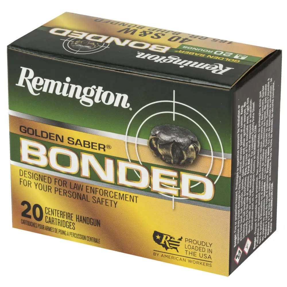 Remington Ammunition GSB40SWAB Golden Saber Bonded 40 S&W 165 gr Brass Jacket Hollow Point (BJHP) 20 Bx/ 25 Cs