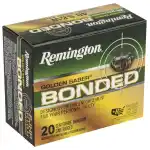 The Golden Saber Bonded features Remington's special bonded-bullet design, bringing unmatched expansion, weight-retention, and barrier-blind performance. The lead core is hot-bonded to brass jacket, while the reduced bullet nose diameter is ideal for precise bore alignment and match-grade accuracy. Jacket stiffness and wall thickness optimized to eliminate over-expansion.