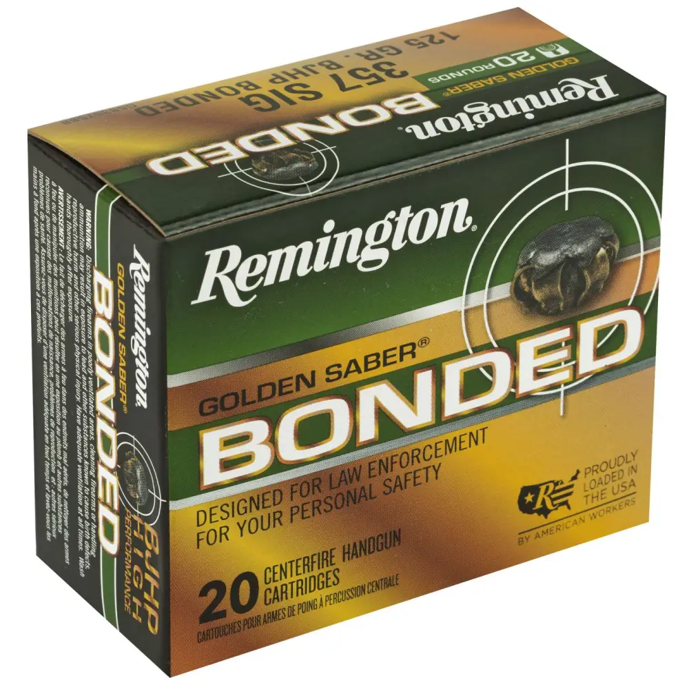 Remington Ammunition GSB357SBB Golden Saber Bonded 357 Sig 125 gr Brass Jacket Hollow Point (BJHP) 20 Bx/ 25 Cs