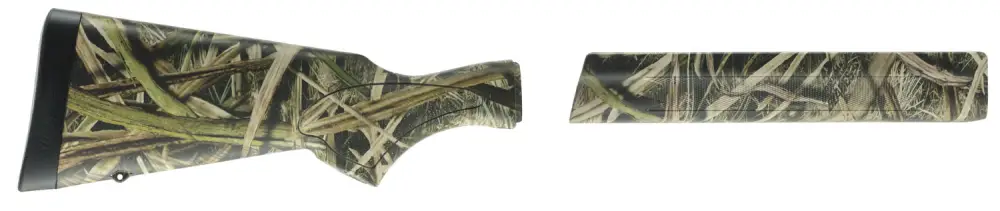 This synthetic stock and forend set has a SuperCell recoil pad and a Mossy Oak Shadow Grass Blades camouflage finish. It is compatible with Remington's 1100/11-87 in 12 Gauge. The forend may require modification for fitment to the Model 1100.