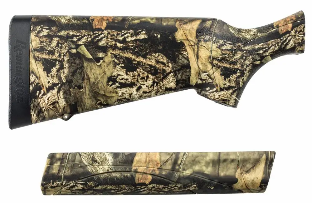 This synthetic stock and forend set has a SuperCell recoil pad and a Mossy Oak Break-Up Country camouflage finish. It is compatible with Remington's V3 in 12 Gauge.