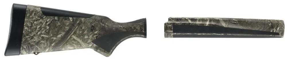 This synthetic stock and forend set has a SuperCell recoil pad and a Mossy Oak Duck Blind camouflage finish. It is compatible with Remington's Versa Max and Versa Max Sportsman in 12 Gauge