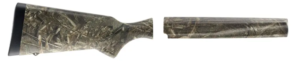 This synthetic stock and forend set has a SuperCell recoil pad and a Mossy Oak Duck Blind camouflage finish. It is compatible with Remington's Versa Max and Versa Max Sportsman in 12 Gauge.