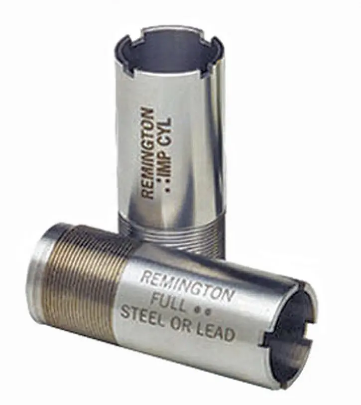 Remington chokes are a system of interchangeable choke tubes, extended chokes, and choke wrench that allow you to quickly and easily change the choke of your shotgun to match specific hunting conditions, seamless stainless steel construction gives them the strength to handle steel or lead shot without wear or loss of constriction.