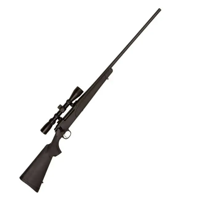 Remington's Model 700 bolt action rifle is known for its accuracy. This ADL model features a black synthetic stock with a blind box magazine and a matte blued carbon steel barrel. It includes a mounted and bore-sighted 3-9x40mm scope.