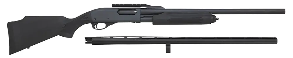 Like all Model 870 shotguns, this workhorse features a receiver milled from a solid billet of steel for maximum strength and reliability. The silky-smooth twin action bars prevent binding and twisting so you'll always have the chance to get off a second shot. Appropriately dressed for the hunt and not for the wall, each shotgun sports non-reflective, black matte metalwork and a no-frills, black synthetic stock and forend. This Combo model has a 23" fully rifled Cantilever deer barrel, and a 28" vent rib all-purpose barrel with a Modified Rem Choke tube.