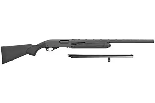 Like all Model 870 shotguns, this workhorse features a receiver milled from a solid billet of steel for maximum strength and reliability. The silky-smooth twin action bars prevent binding and twisting so you'll always have the chance to get off a second shot. Appropriately dressed for the hunt and not for the wall, each shotgun sports non-reflective, black matte metalwork and a no-frills, black synthetic stock and forend. This Combo model includes a 26" vent rib barrel with a single bead sight and Modified Rem Choke, and an 18.5" cylinder bore barrel.