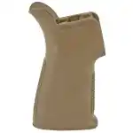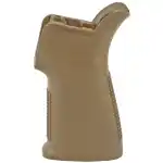 Reptilla's CQG grip supports a wide range of hand sizes and weapon configurations, featuring a more pronounced vertical grip angle, anti-slip front and rear texture, and an enhanced beaver tail design; the CQG encourages the shooters hand to be positioned higher on the grip, for greater control and improved comfort. It has been specifically designed to enhance ergonomics and performance of compact sized short-barreled rifles, AR15 pistols, pistol caliber carbines, and PDWs.