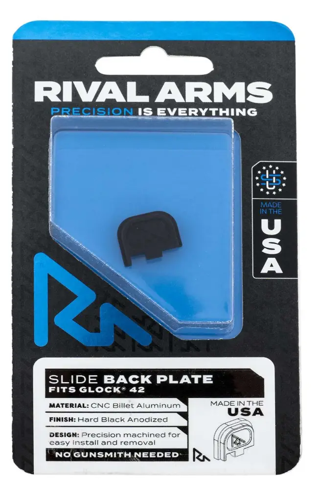 This Slide Back Cover Plate is CNC machined from aluminum with a black anodized finish.