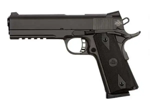 The TAC Standard FS has a full tactical rail. This pistol also has a 5" button rifled barrel supported by a full length guide rod and full dust cover. Includes a low-profile angled rear sight along with skeletonized hammer and trigger with adjustable over travel stop. The TAC Standard is finished with a tough parkerzied matte coating and has durable polymer checkered grips.