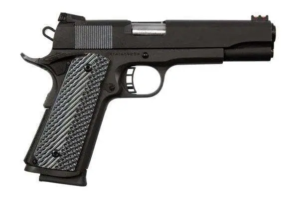 The Rock Ultra FS has a 5" button rifled barrel supported by a full length guide rod. The smooth angled, snag-free style allows for quick draw in fast need situations. Includes a low profile adjustable rear sight, a high visibility fiber optic front sight, skeletonized hammer and trigger with adjustable over travel stop and ambidextrous safety. Finished with a tough, parkerzied matte coating and comes with G10 tactical grips.