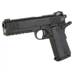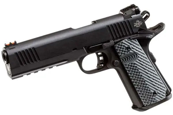 The TAC Ultra FS has a full tactical rail and a 5" button rifled barrel supported by a full length guide rod and full dust cover. It includes a low profile adjustable rear sight and high visibility fiber optic front sight and is also fitted with a skeletonized hammer and trigger with adjustable over travel stop. The TAC Ultra is finished with a tough parkerzied matte coating and adds battle ready G10 tactical grips.